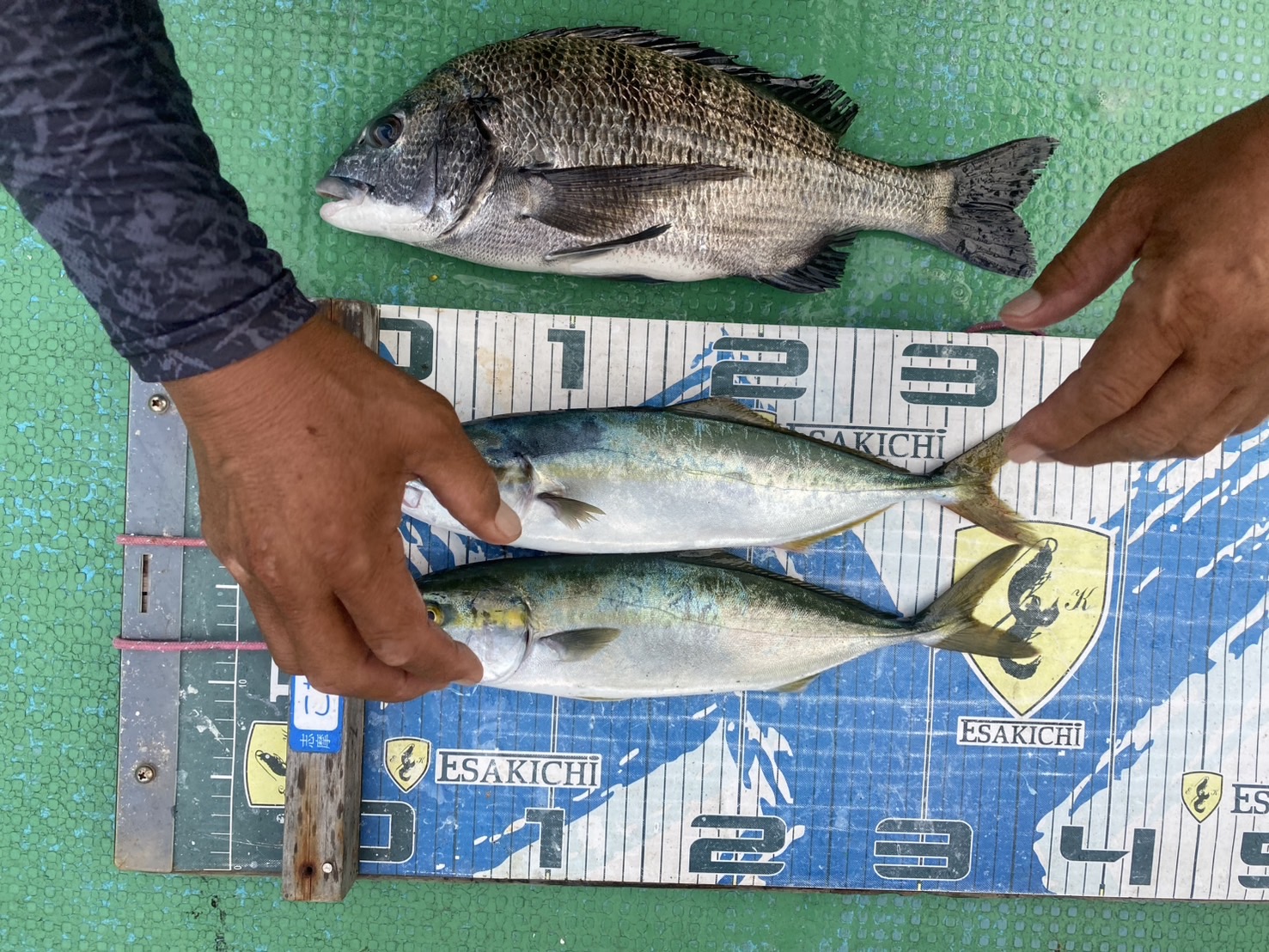 7/3釣果です。チヌ45センチを頭に7枚、クエマス、チャリコ、へダイエサは、オキ…